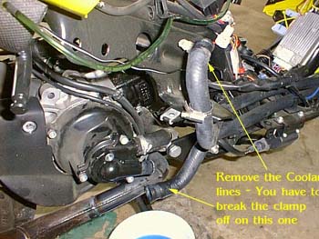 Now disconnect your coolant lines. There is a hose clamp on the hose attached to the cylinder, but you have to break the clamps off the other hosees. You are going to need some new hose clamps to replace these.
