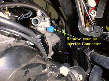 Disconnect your air injector connector. It is hidden behind the coolant line on your cylinder.