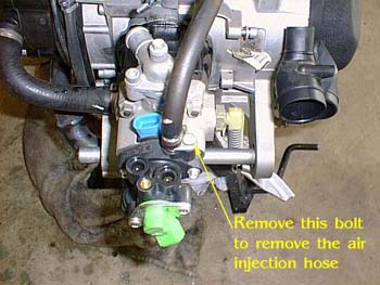 Remove the torx head bolt that holds your air injection hose on the cylinder. Then pull the air hose out.