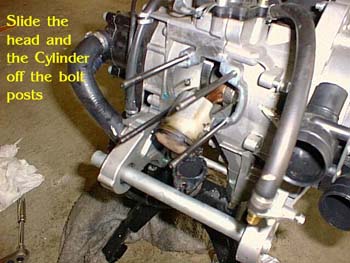 Slide the head and the cylinder off the four bolt posts exposing the piston. Remove any gasket that may be stuck to the motor.