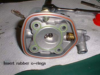 OK, now we need to remove everthing that is attached to your old cylinder head and attach it to the new. There is an assortment of o-rings and gaskets. Replace all that apply, put some 2-cycle oil on the o-rings before assembling, it will help them go together easier. If you see an o-ring, find one the same size and replace it.