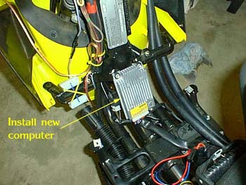Now that the cylinder is installed, you will now need to install the computer that came with your kit. Start by disconnecting the conector in the bottom of the computer. Then Remove the three bolts that hold the computer to the frame.