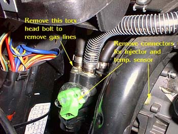 Also you are going to need to remove the torx head screw that holds your fuel lines in.